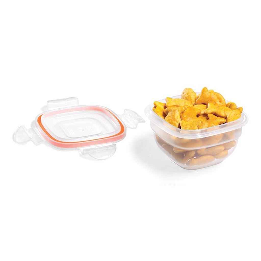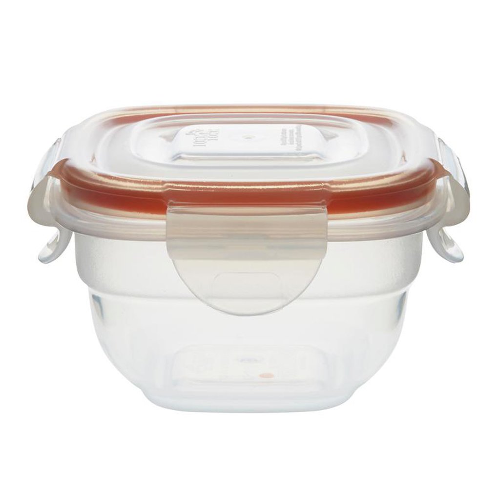Lock & Lock "Easy Match" square jars are safe and functional containers made of high quality plastic that is durable and can withstand high temperatures. These jars are 100% airtight, ensuring long-lasting freshness of the stored food and are also excellent in terms of aroma preservation. The four movable "clips" securing the lid are wear-resistant. The containers have a specially designed outer bottom so that they can be stacked safely and do not slip. Lock & Lock containers can be used in the refrigerator, microwave, freezer and dishwasher. Lock & Lock jars have passed stringent hygiene tests and comply with the strictest regulations. Capacity 100 ml. Colour clear, orange.Additional parameters