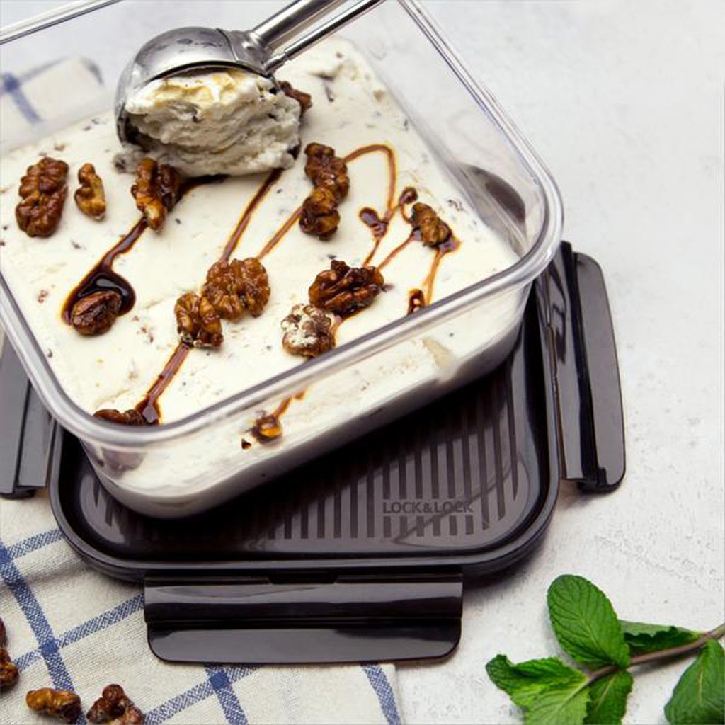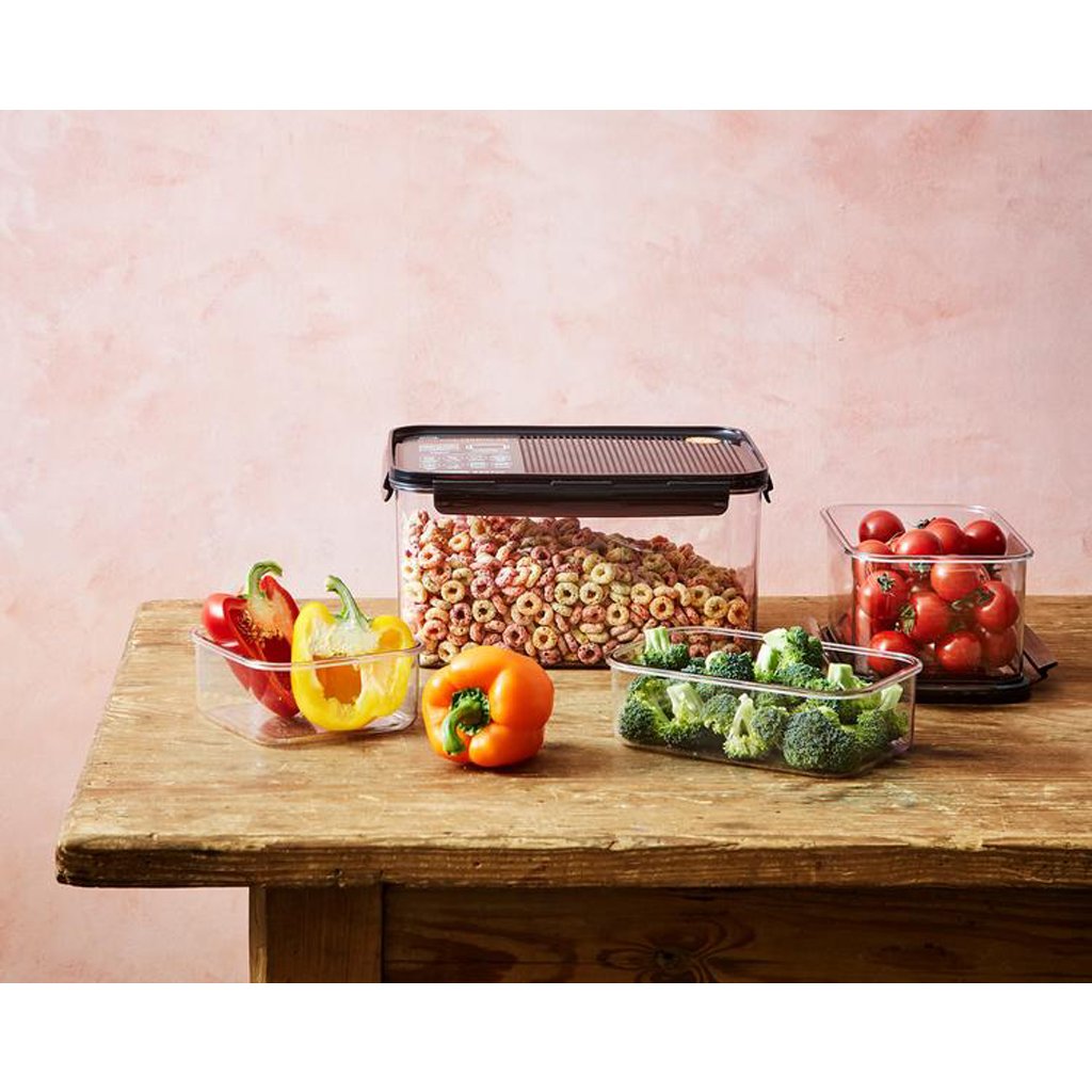 New Bisfree Modular" from LockNLock. The high quality rectangular box is made of BPA free plastic material. The box is suitable for storing and carrying food. The lid with four clips has a health-safe, antibacterial silicone seal. This makes the jar 100% airtight and watertight, ensuring the long-term freshness of the stored food. It is also excellent in terms of flavour preservation. Suitable for the dishwasher, freezer and microwave. The jars are stackable with the other jars in this model range, so you can stack them beautifully to save space in your fridge or freezer. Lock & Lock jars have passed stringent hygiene tests and meet the strictest regulations. Capacity 450 ml. Colour clear, brown lid."Additional parameters