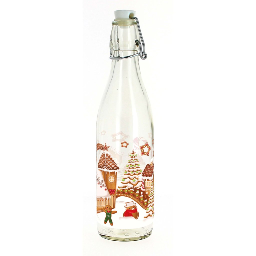 BOTTLE WITH SNAP CAP 1L GINGERBREAD VILLAGE