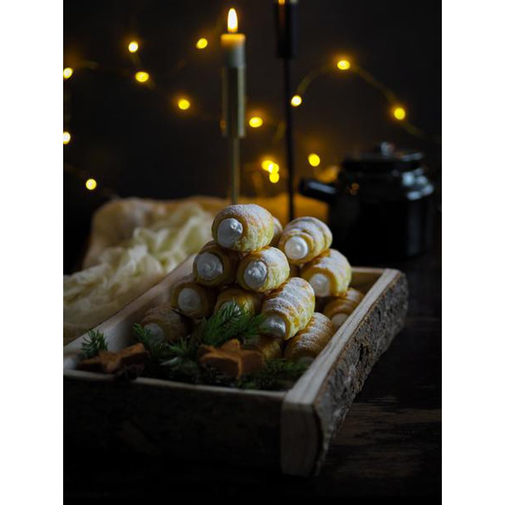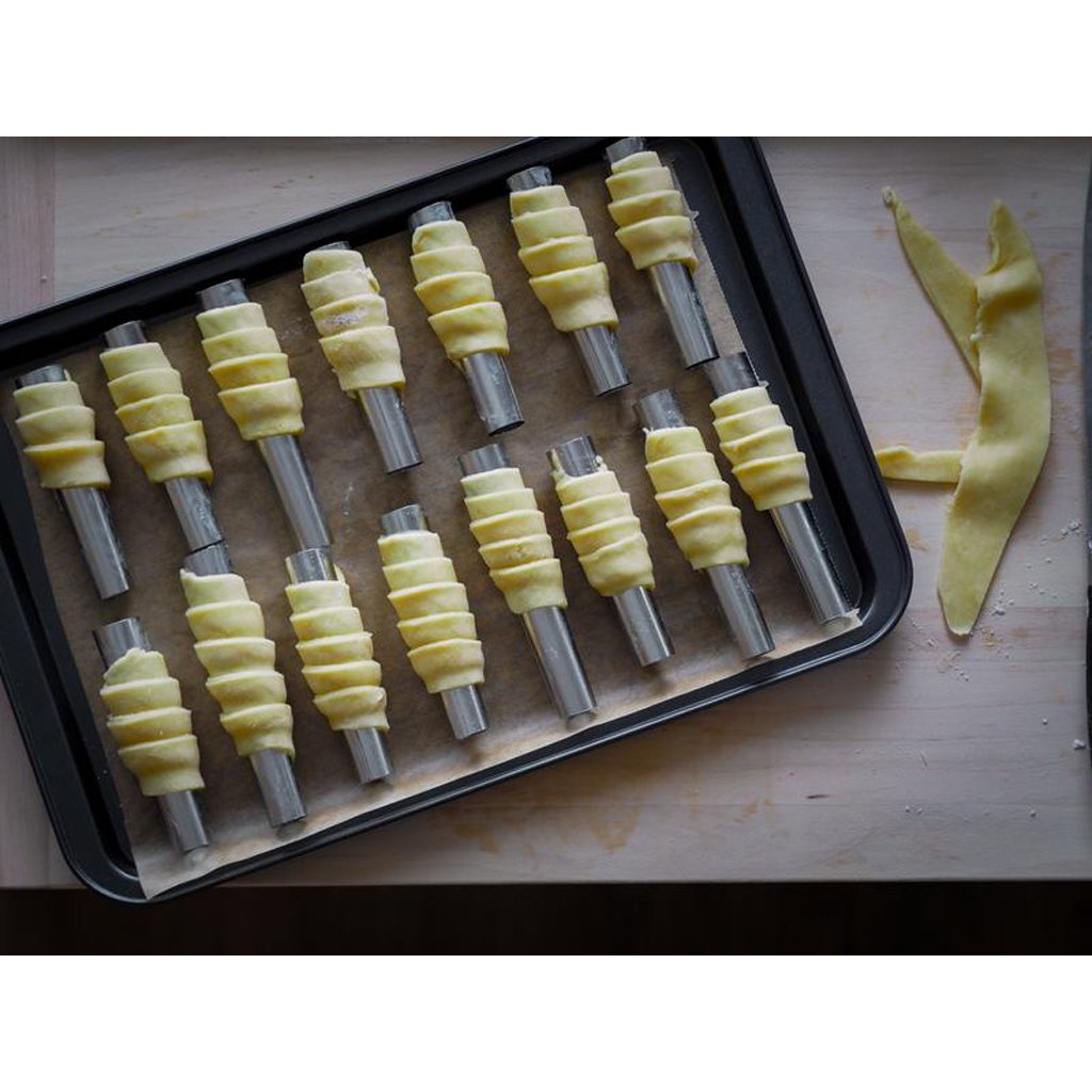 The tubes for the production of diatoms are made of tinplate. Start preparing your homemade kremroli or trdelnik. Roll the prepared dough into tubes smeared with oil or fat and spread them on a baking sheet lined with baking paper. Package contains 10 pieces. Length of tubes 10,5 cm.Additional parameters