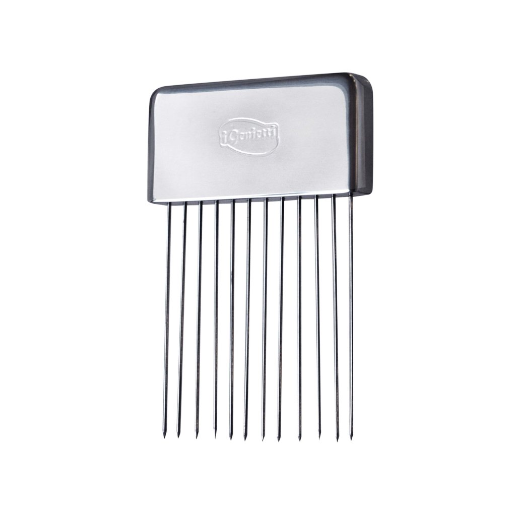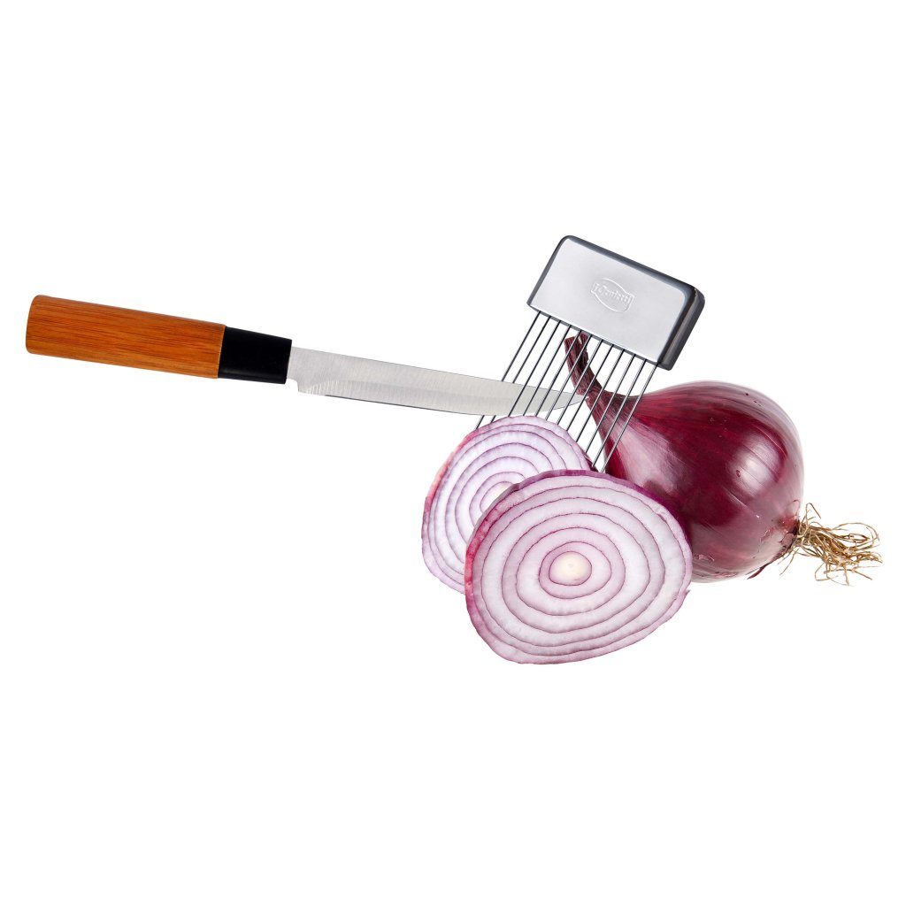The onion holder is suitable for quick and safe slicing of onions, which do not slip and fall apart with the help of the spikes. Made of high quality non-toxic stainless steel. Not dishwasher safe. Dimensions - 8 x 12 cm.Additional parameters