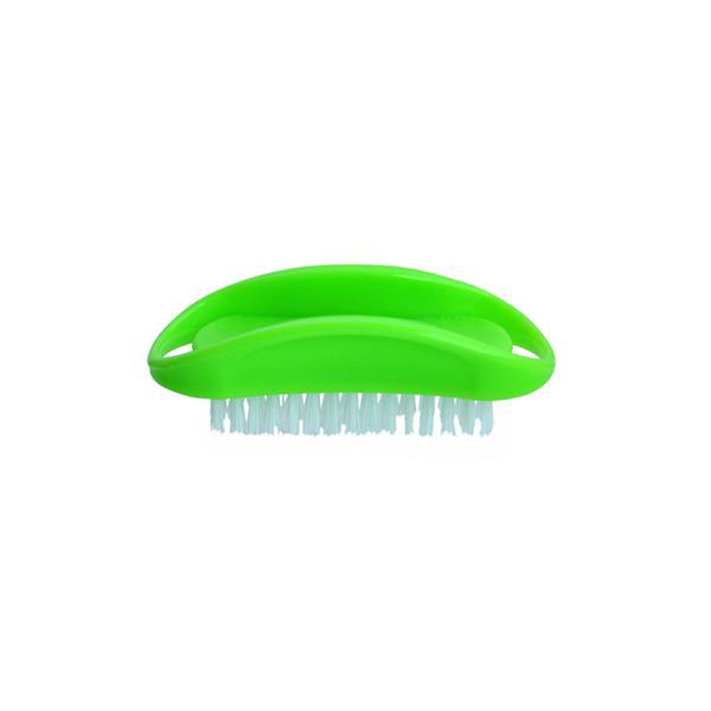 Plastic brush for cleaning hands after work. The body of the brush is plastic, synthetic bristles. Anatomical shape, holds well in the hand.Additional parameters