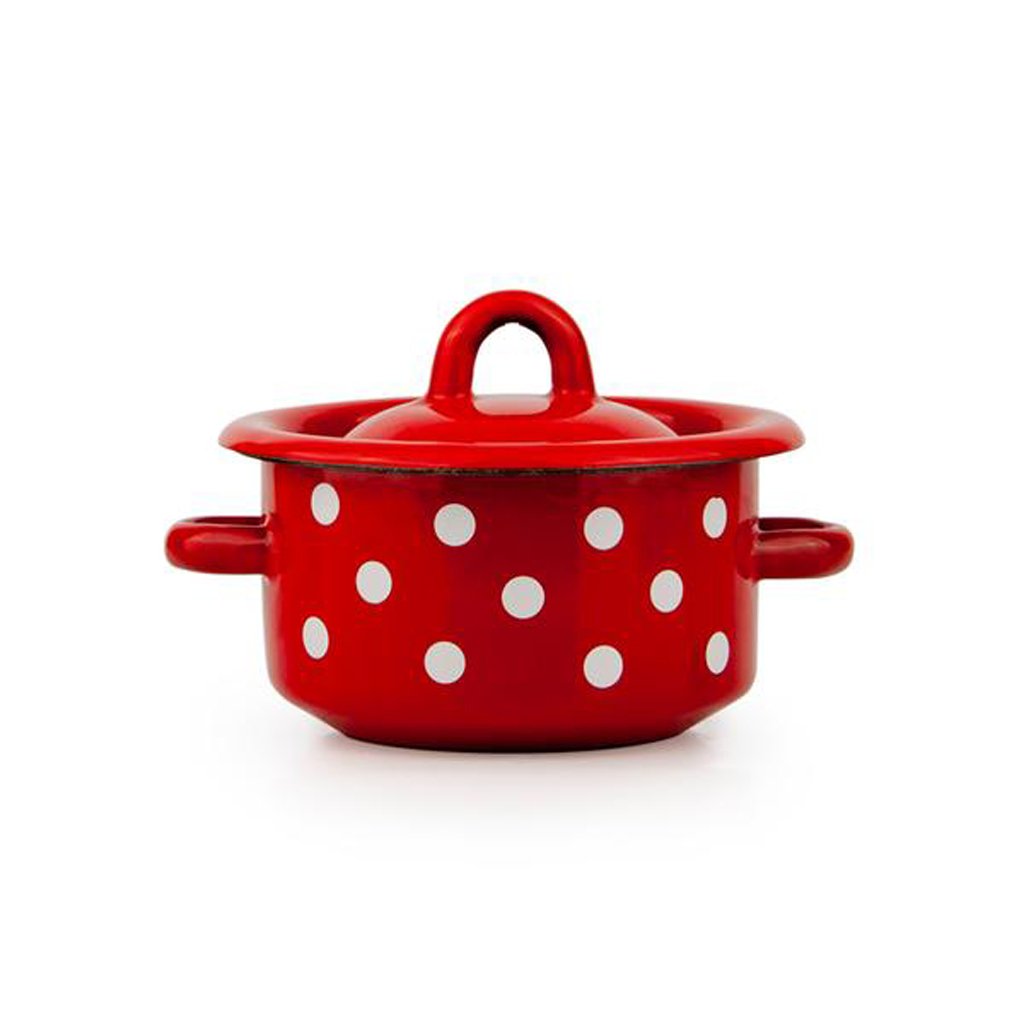 POT WITH LID ENAMEL 0,4 L, DECOR POLKA DOT