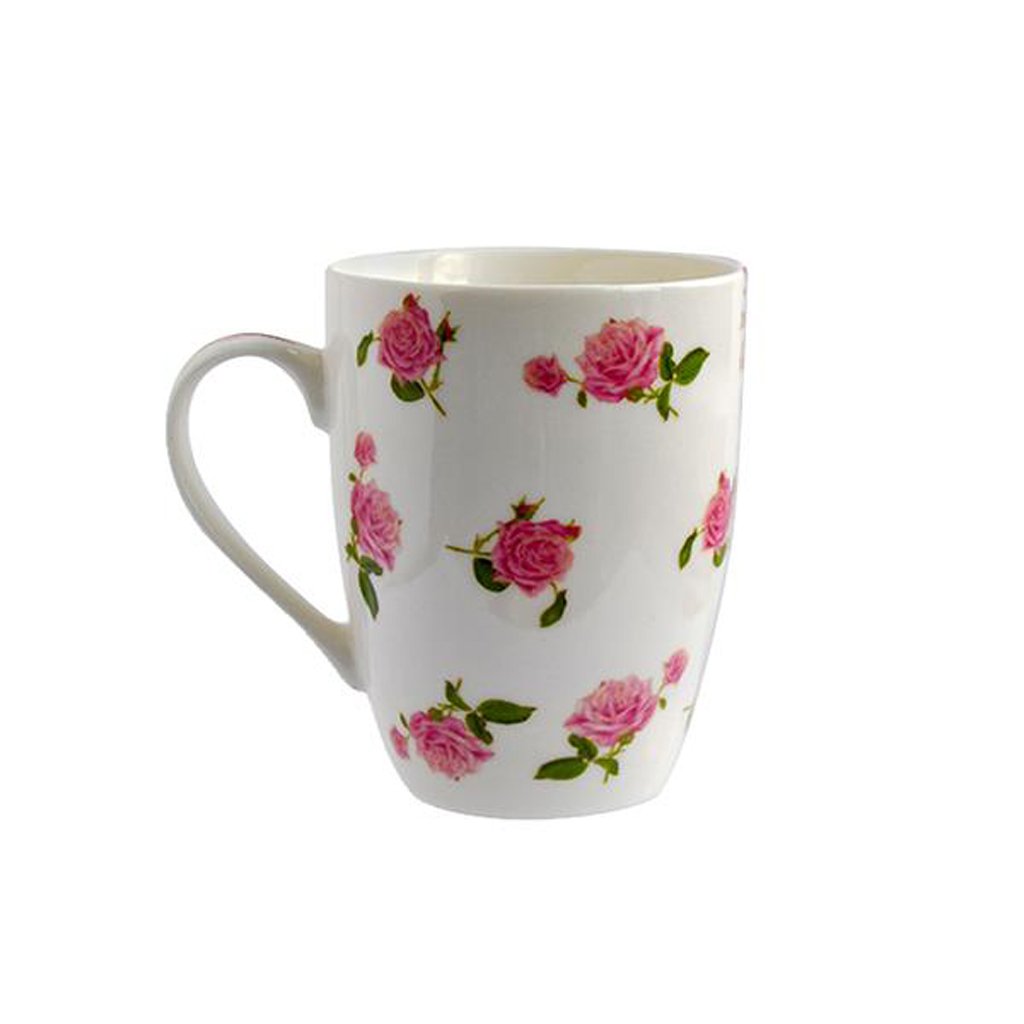 Retro mug made of high quality ceramic with pink rose decoration. Microwave and dishwasher safe. Volume 340 ml. Dimensions - 8 x 10,3 cm. Assorted rose motifs.Additional parameters