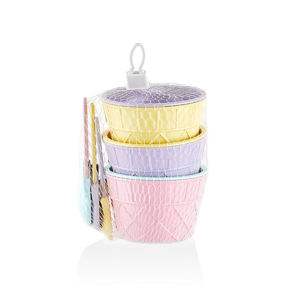 ICE CREAM SET 3X BOWL AND 3X SPOON, PLASTIC
