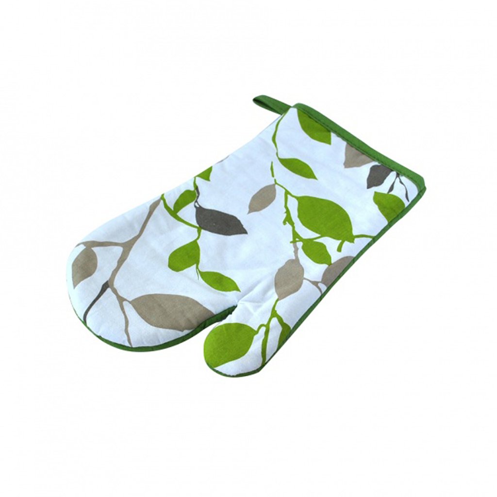 Kitchen mitt - the shape of a glove is suitable for catching and carrying hot pots, baking trays from a hot oven or for lifting a hot lid. Green flowers motif. Material - cotton. Dimensions - 26,5 x 17 cm.Additional parameters