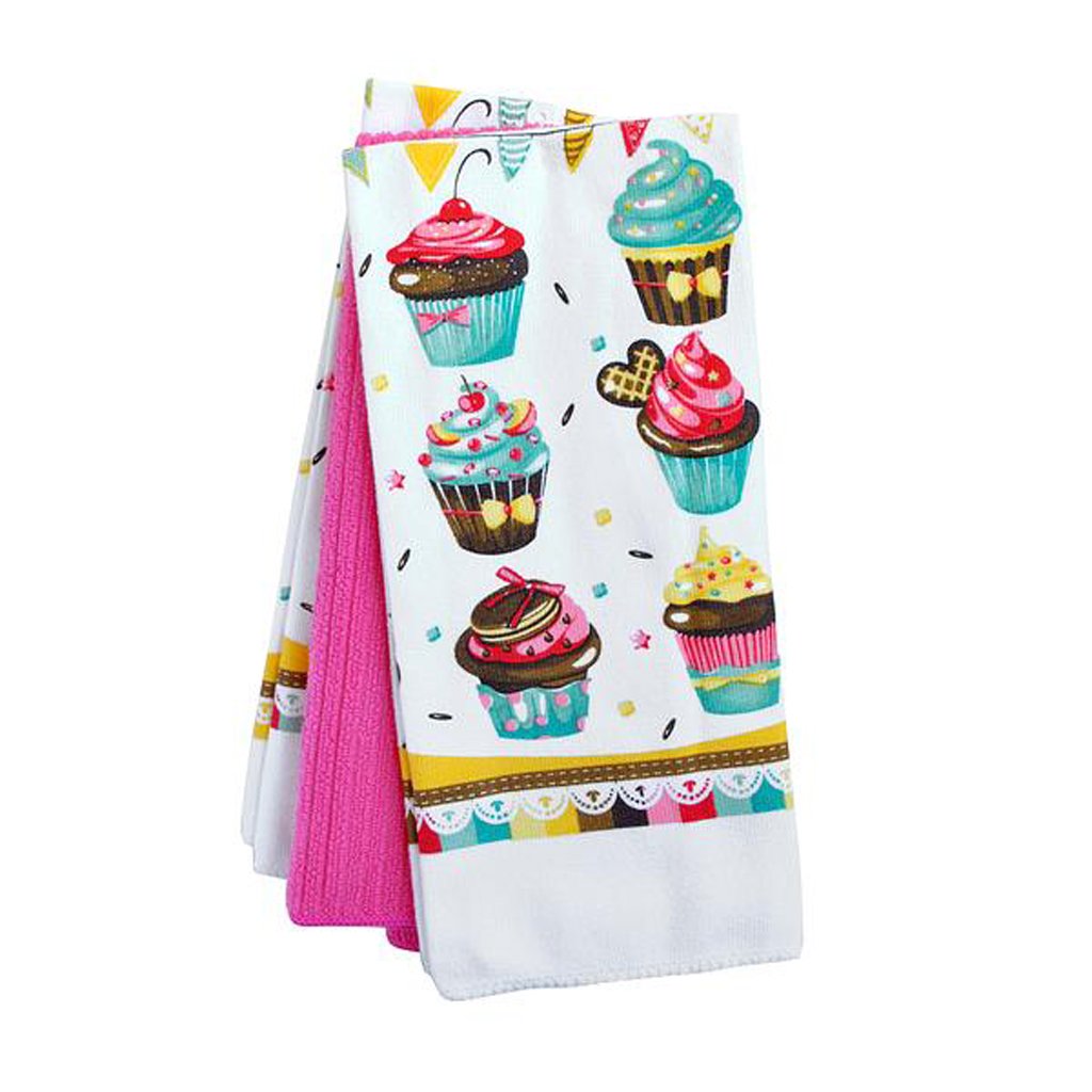 Beautiful kitchen towels - set of 3. Modern decor "cupcakes". Have lots of fun while cooking with cheerful and popular motifs. Material - 2 pcs - microfiber (80% polyester, 20% polyamide), 1 pcs - 100% polyester. Dimensions - 38 x 64 cm.Additional parameters