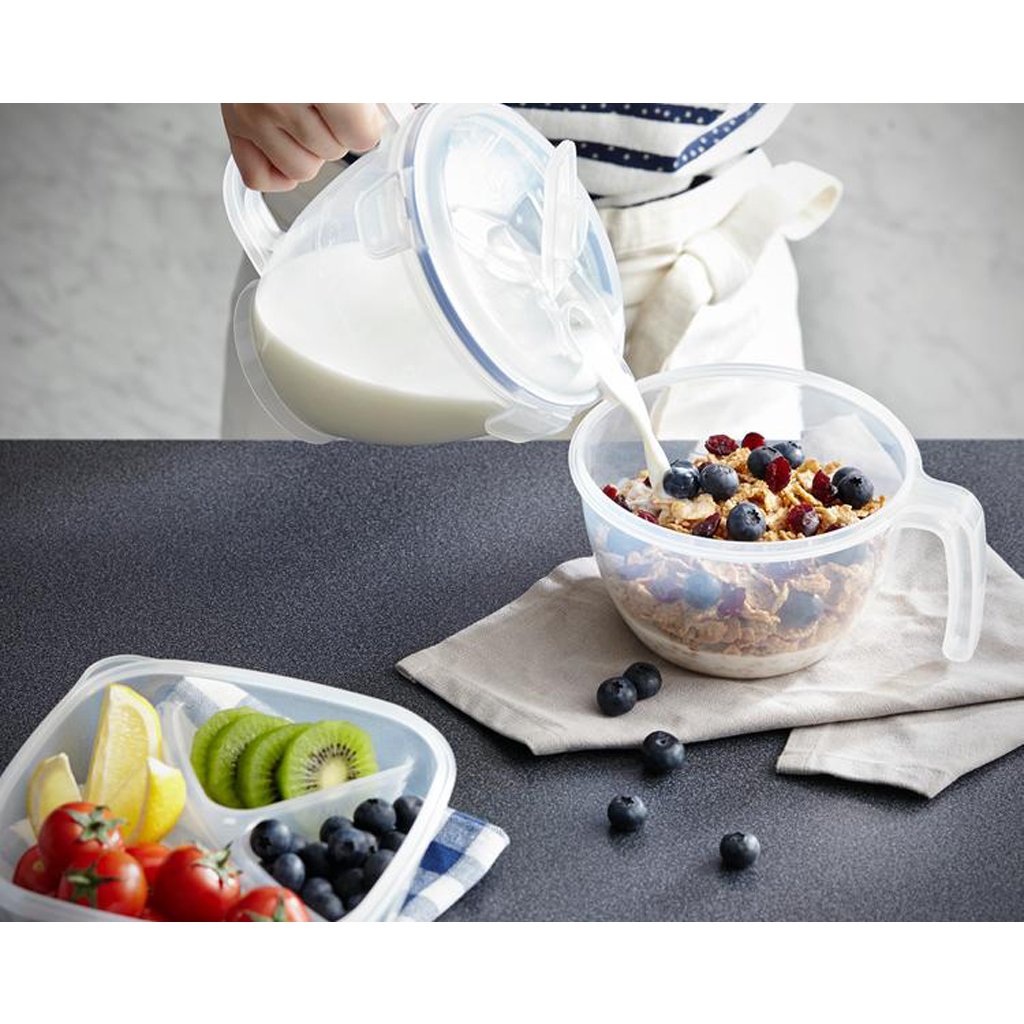 The lock containers can be used in the refrigerator, microwave or for freezing. The lock jars have passed stringent hygiene tests and comply with the strictest regulations. The lock jars can be washed in the dishwasher.The capacity of the cereal jar is 950 ml. Dimensions - 15 x 11 cm.