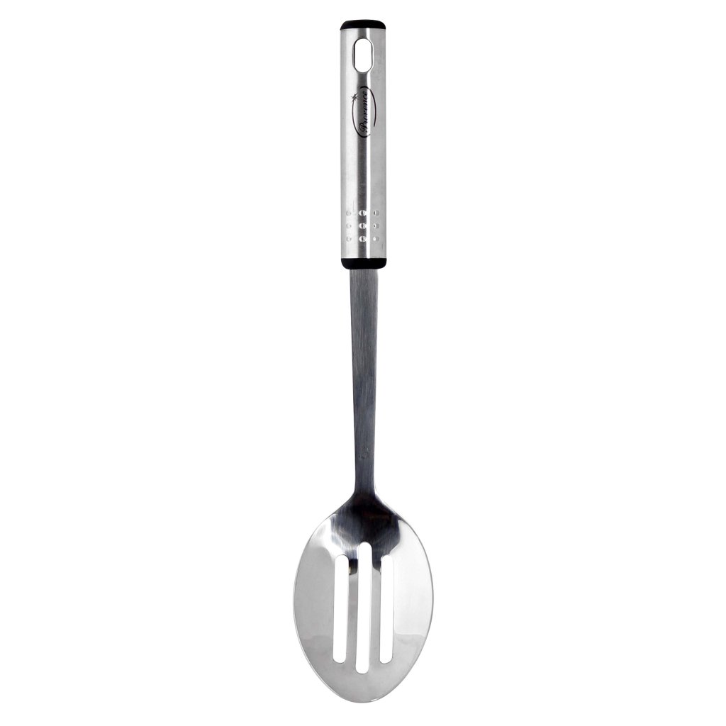 Salad spoon, length 32 cm, made of shiny 18/8 stainless steel, matt handle with hanging hole, for mixing and scooping salads, dishwasher safe. Colour - silver. Dimensions - 32 x 6, 5 x 0, 9 cm.Additional parameters