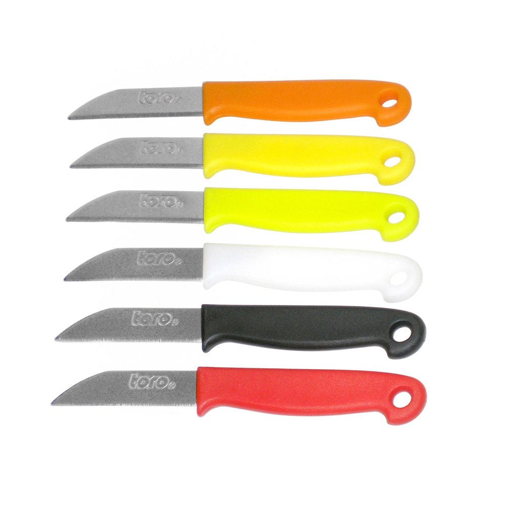 This versatile smaller knife is handy for peeling or cutting vegetables and other foods. The blade is made of high-quality stainless steel material and the hole in the plastic handle allows it to be hung on a hanging rod. The dimensions of the knife are: 15,2 x 1,5 cm. Blade length - 6 cm. Assort 6 colours -red, yellow, orange, black, white, light green.Additional parameters