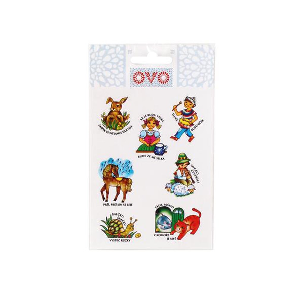 Easter egg decals with different motifs are a beautiful tradition in egg decorating. Thanks to the decals you can make yourself a beautiful Easter decoration easily. There are 7 decals with rhymes on 1 sheet.