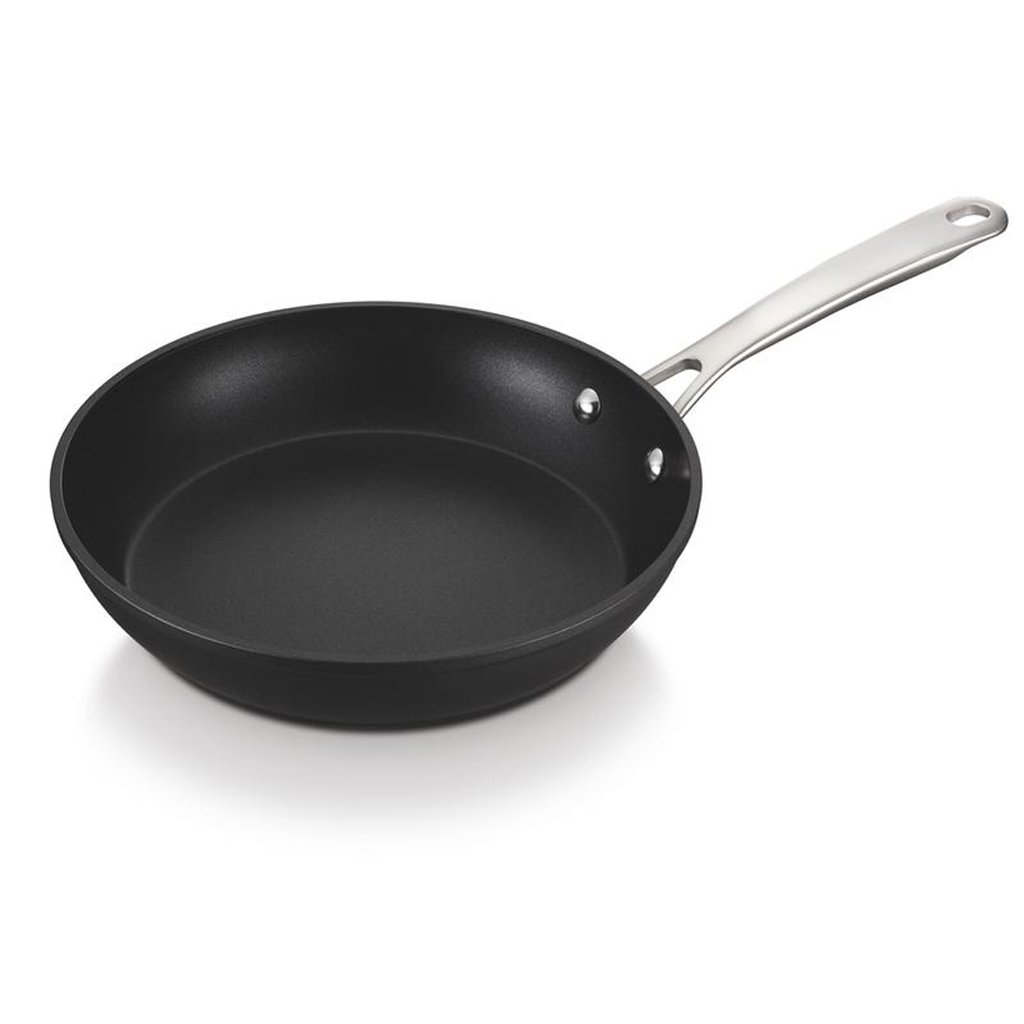 BRABANTIA quality frying pan with a three-layer non-stick surface that can be used on all types of cookers including induction, it is also suitable for the oven (up to a maximum temperature of 180 °C). The excellent non-stick surface of the pan allows the use of less fat when cooking. The elegant ergonomic handles hold the rivets firmly. Therefore, there is not much heat transfer and they are therefore safer and as comfortable as possible when cooking.When cooking, use only wooden or plastic utensils. Always use a mitt when handling a hot pan, the handle is stainless steel and could cause burns. The pan can be washed in the dishwasher, but we recommend a gentler hand wash using non-abrasive detergents. The pan diameter is 28 cm.Additional parameters