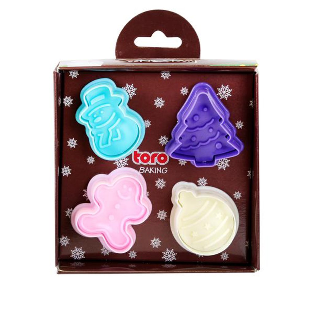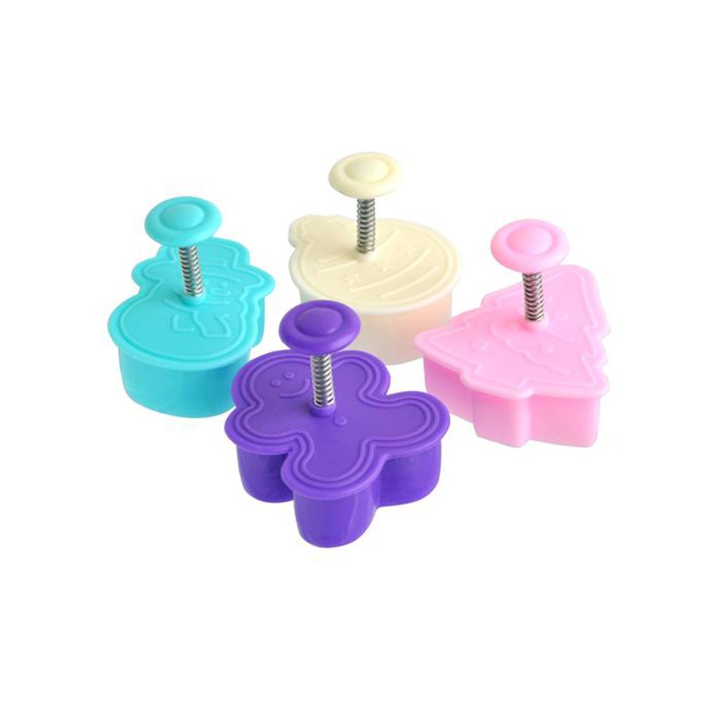 Christmas stamps for sweets. Material - plastic. Simply print the Christmas stamp into the dough when baking cookies. Package contains 4 pcs of different motifs - gingerbread, tree, snowman, Christmas ball. Dimensions - 5 x 5 cm.Additional parameters