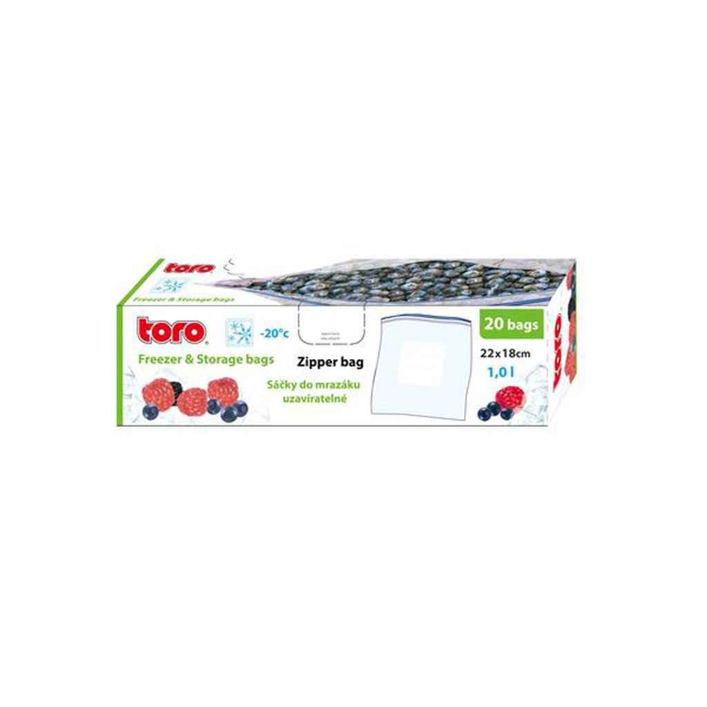 The resealable bags are suitable for refrigerator and food storage. The bags can be labelled with a pen. When using the zipper, the bag is airtight and waterproof, keeping your food fresher longer. The set contains 20 bags, 22 x 18 cm - 1 l.