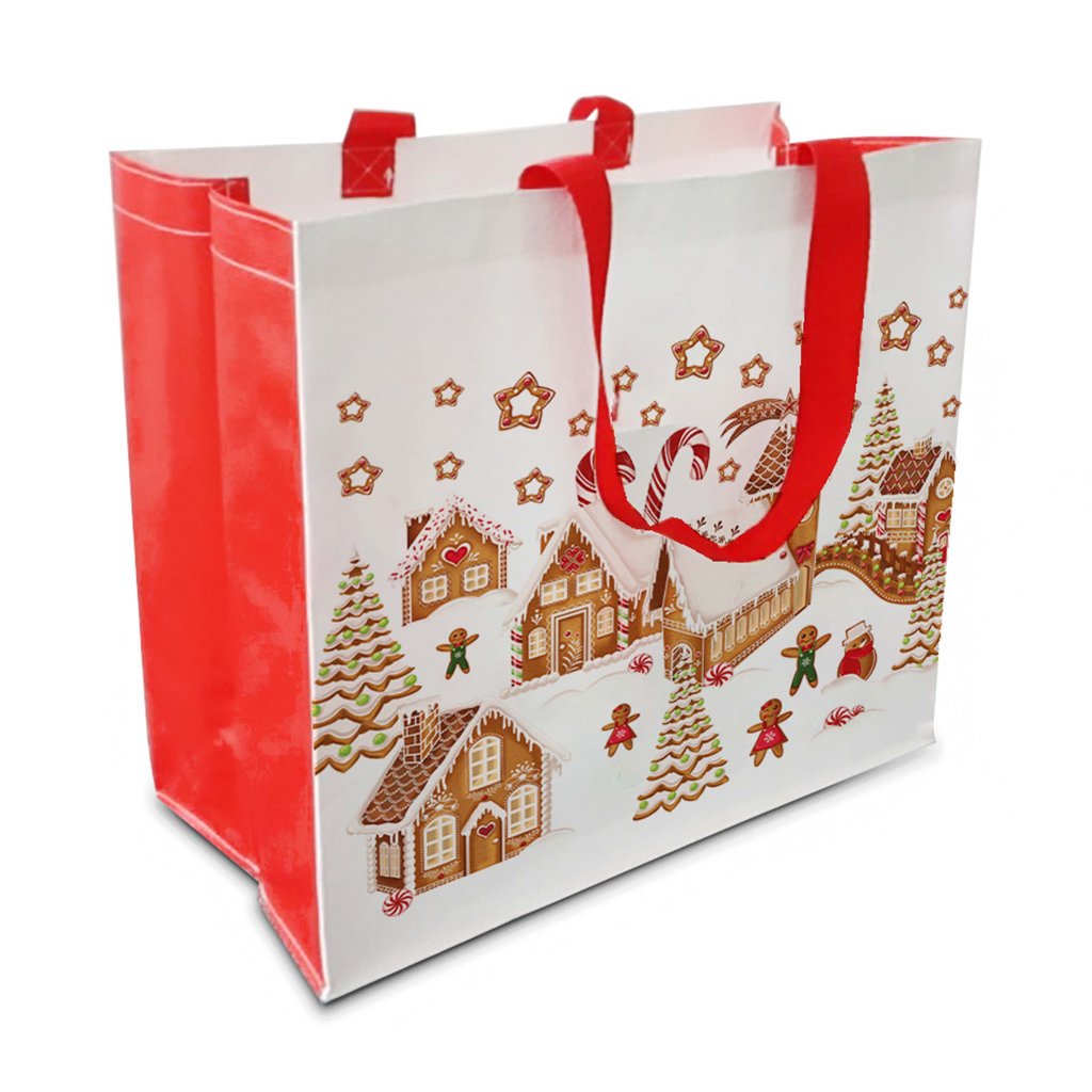 SHOPPING BAG GINGERBREAD VILLAGE 43X37X21,5CM