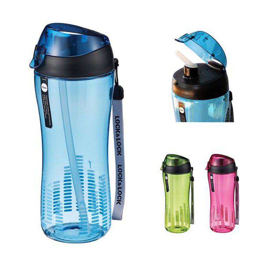 Sports bottle, fits perfectly in the hand. It's made of a new resin alloy called Tritan. This material is characterized by high transparency, durability, and of course, health safety.The hinged cap with silicone seal isolates from surrounding dirt and bacteria. The bottle comes with a practical strap. This bottle also includes a handy silicone straw. The drinks in the bottle can be cooled in the freezer. Dishwasher safe.