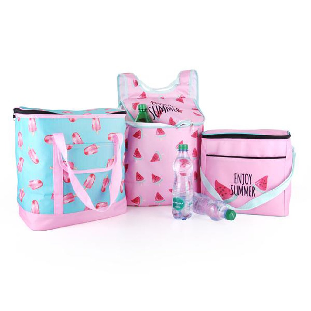 Practical shoulder bag that allows you to store your favourite food and drink in hot summer weather thanks to the inner layer of PE material. Great for summer picnics, a walk in the woods or a trip to the water. The cooler bag is zipped with a capacity of 8 litres, in soft pastel colours.Additional parameters