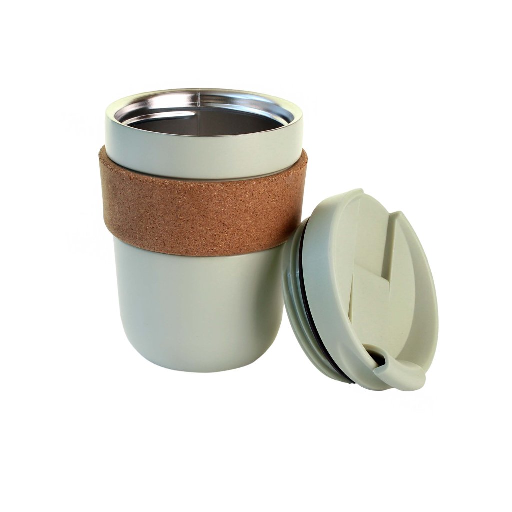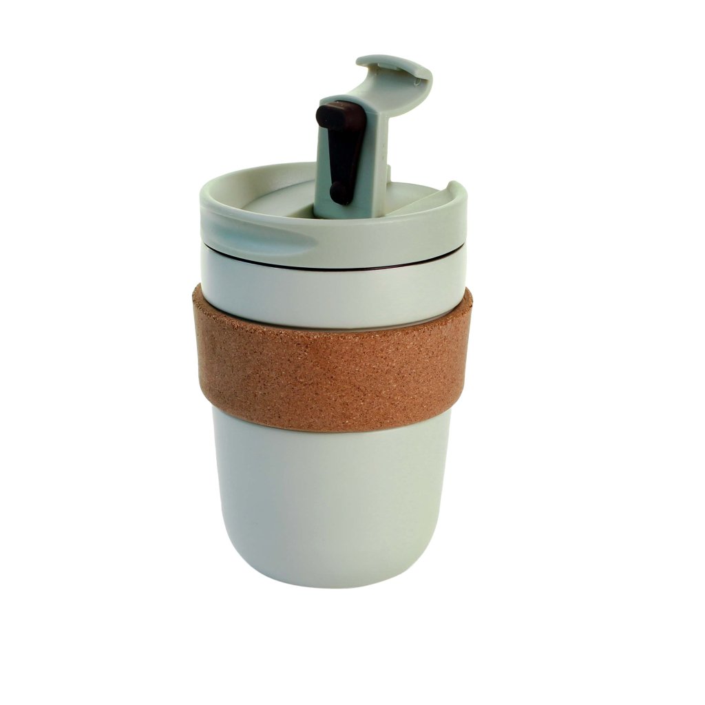 THERMO MUG, PLASTIC 250ML 12,9CM GREEN CORK
