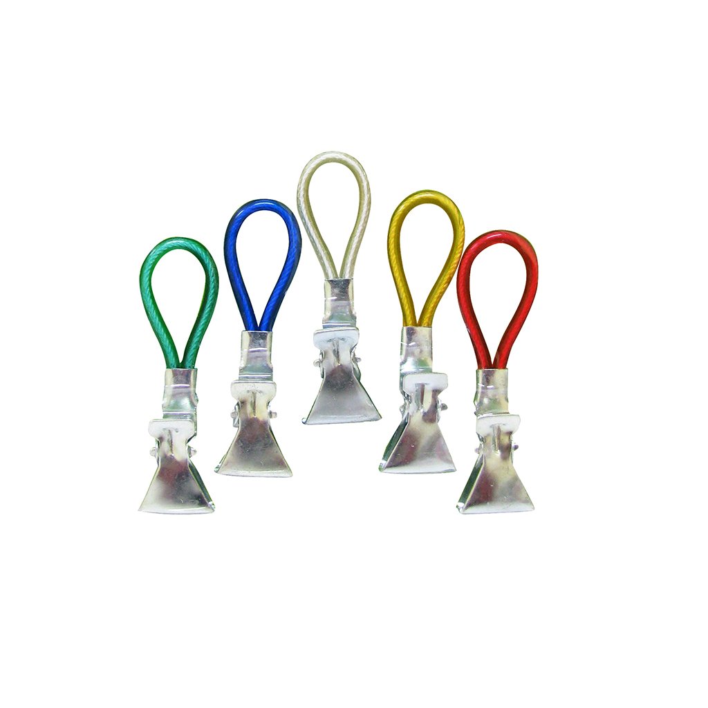 Towel clips (hooks, tabs) are a practical household tool for hanging towels and washcloths in the bathroom or kitchen. Set of 5. Material - rubber, metal. Assorted colours. Dimensions - 1,5 x 5,2 cm.Additional parameters