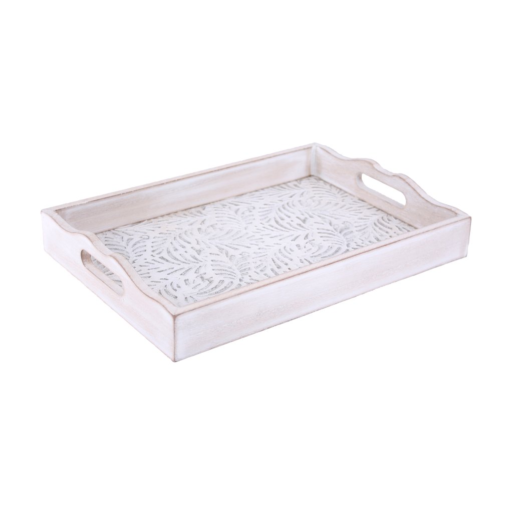 TRAY RECTANGLE 34X25X4,5CM WOOD LEAF PATTERN