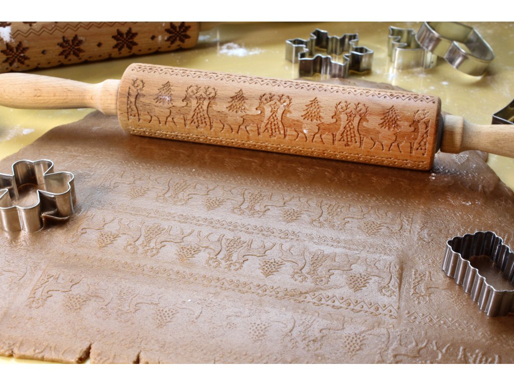 WOODEN DOUGH ROLLER WITH REINDEER PATTERN 19CM