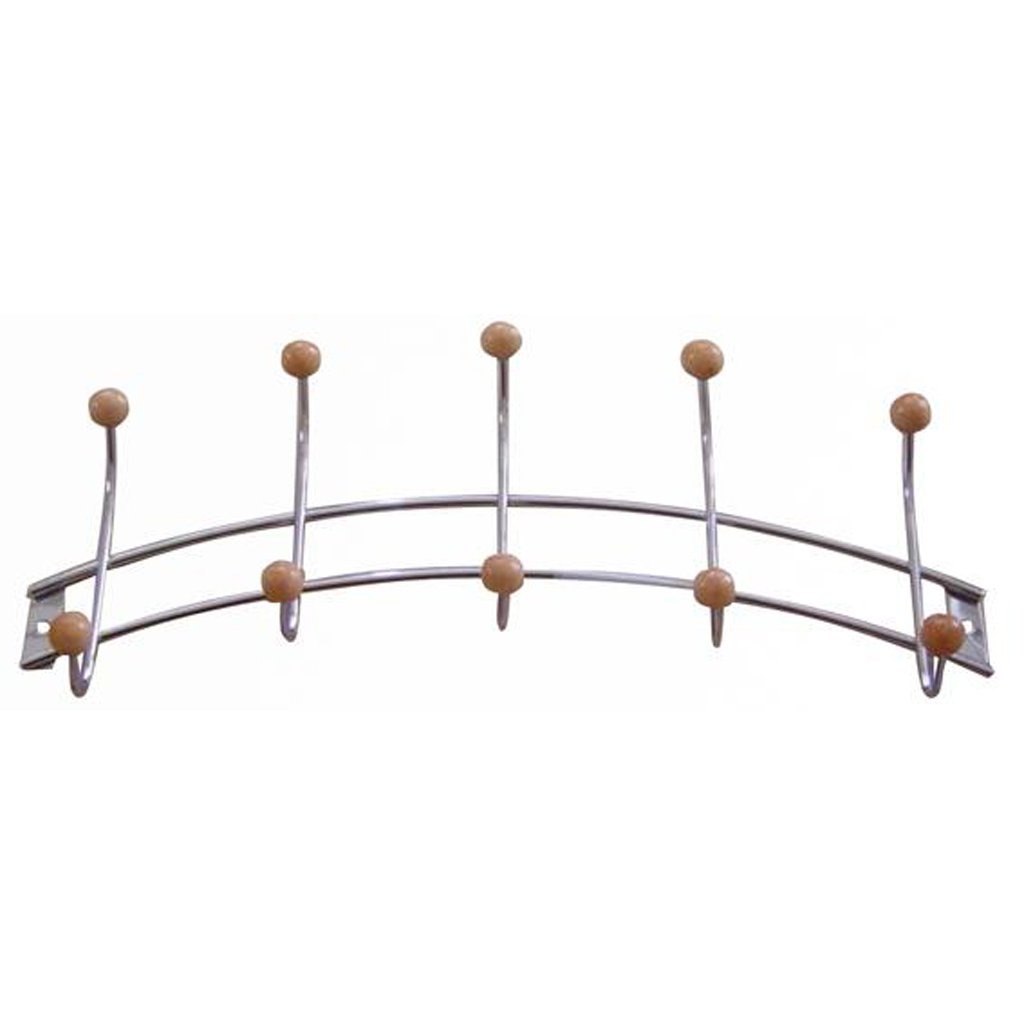 In a closet or other room, this coat rack will serve you very well. It has five hooks, made of chrome-plated metal and wood. Dimensions - 11,5 x 34,5 cm.Additional parameters