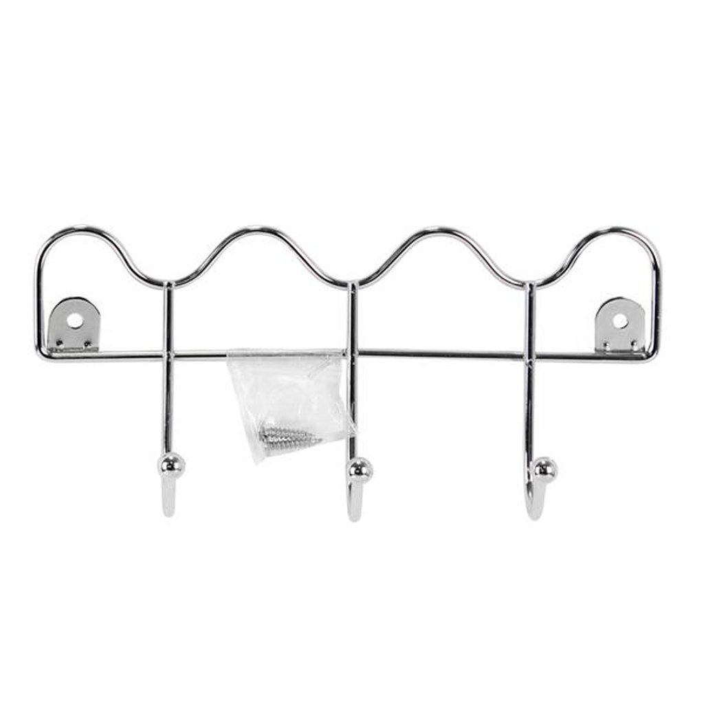 In a closet or other room, this coat rack will serve you very well. It has three hooks, made of chrome-plated metal. Screws are included. Dimensions - 10 x 21,5 cm.Additional parameters